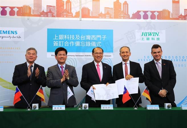 德國西門子臺灣總公司昨日與臺灣工具機大廠上銀科技,在臺中市長林佳龍、經濟部政務次長沈榮津等人見證下,簽訂合作備忘錄,正式成為工業4.0合作伙伴。