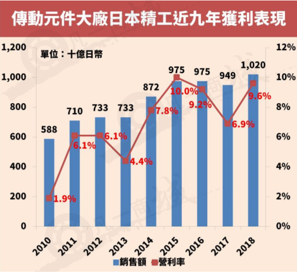 以日本精工來說,除了生產(chǎn)汽車傳動(dòng)零組件外,也是目前世界上傳動(dòng)組件市占率最高的公司。2018年?duì)I收預(yù)計(jì)突破一兆日幣,其中單靠生產(chǎn)機(jī)械設(shè)備用傳動(dòng)組件就賺進(jìn)了近三千億日幣,里面有63.5%是來自海外訂單。
