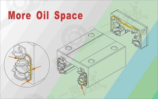 線性滑軌鋼珠循環中使用了高分子聚合物作為循環路徑,僅留下滑座與滑軌需要與鋼珠做精密配合的軌道,使鋼珠產生尖銳聲響的機會大幅度下降。