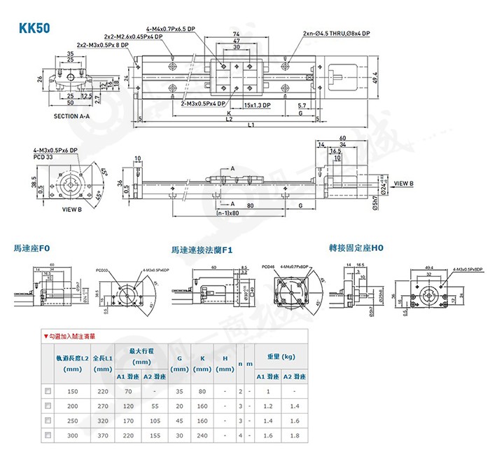• 線性模組HIWIN模組(工業機器人)KK50系列KK5002C-150A1-F0
