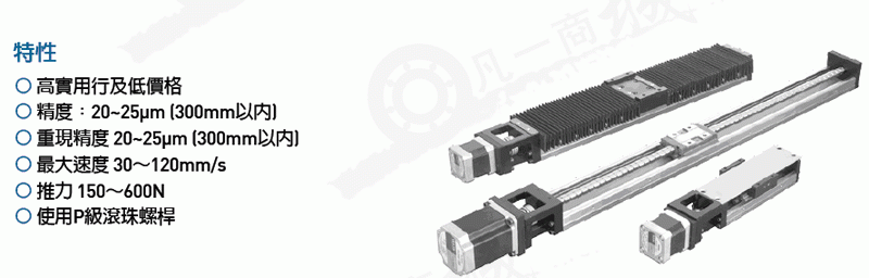 1)多工設(shè)計(jì):整合驅(qū)動(dòng)用的滾珠螺桿及導(dǎo)引用U型軌道,除提供精密直線運(yùn)動(dòng),也能搭配多功能配件。在導(dǎo)入多用途的應(yīng)用設(shè)計(jì)時(shí)非常方便,也能達(dá)成高精密線性傳動(dòng)的需求。