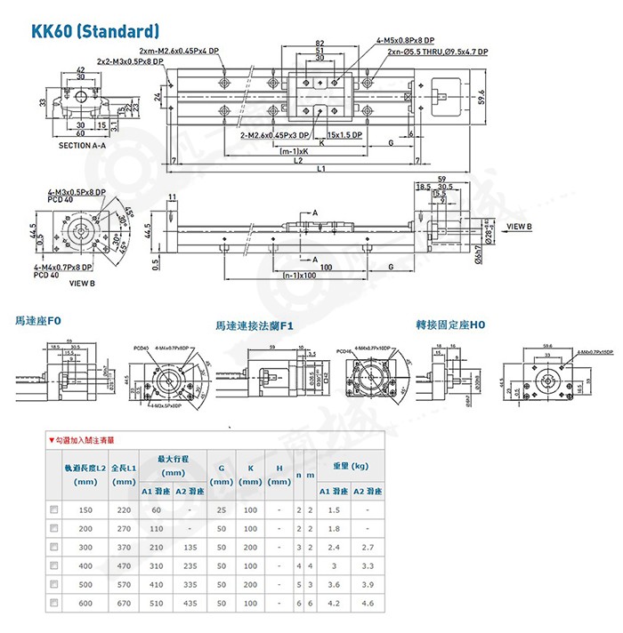 • 線性模組HIWIN模組(工業(yè)機(jī)器人)KK60系列線性模組KK6005C-200A1-F0