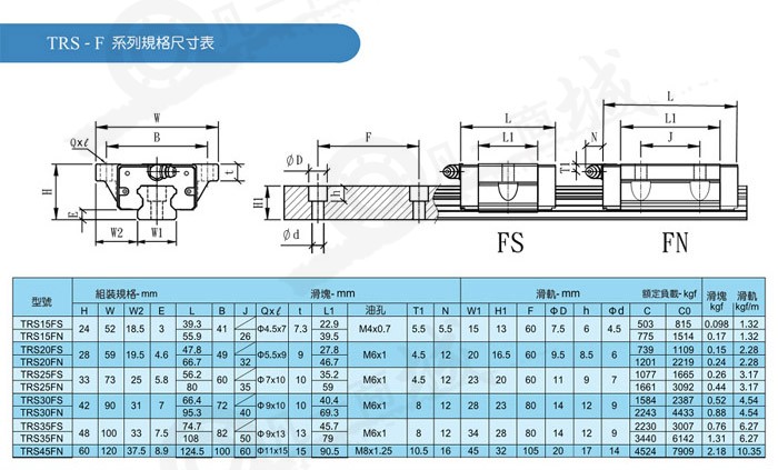 TBI直線導軌為一種滾動導引,借由鋼珠在滑塊與滑軌之間作無限滾動循環,負載平臺能沿著滑軌輕易地以高精度作線性運動。與傳統的滑動導引相較,滾動導引的摩擦系數可降低至原來的1/50,由于起動的摩擦力大大減少,相對的較少無效運動發生,故能輕易達到μm級進給及定位。再加上滑塊與滑軌間的束制單元設計,使得直線導軌可同時承受上下左右等各方向的負荷,上述陳列特點并非傳統滑動導引所能比擬,因此機臺若能配合滾珠螺桿,使用直線導軌作導引,必能大幅提高設備精度與機械效能。